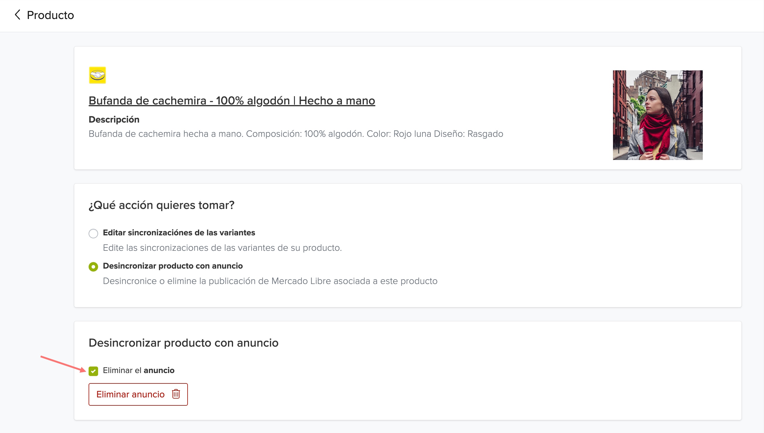 Além disso, você terá a opção de excluir o anúncio no Mercado Livre marcando a caixa correspondente.