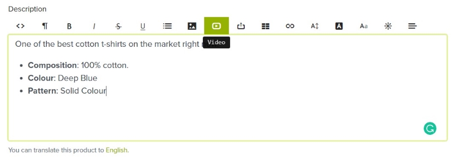 Com o uso do nosso editor de descrições, tem a capacidade de enriquecer as descrições dos seus produtos com HTML, adicionar widgets, ficheiros e muito mais. Embora este passo seja opcional, pode significativamente melhorar o apelo visual e a funcionalidade das suas listagens de produtos.